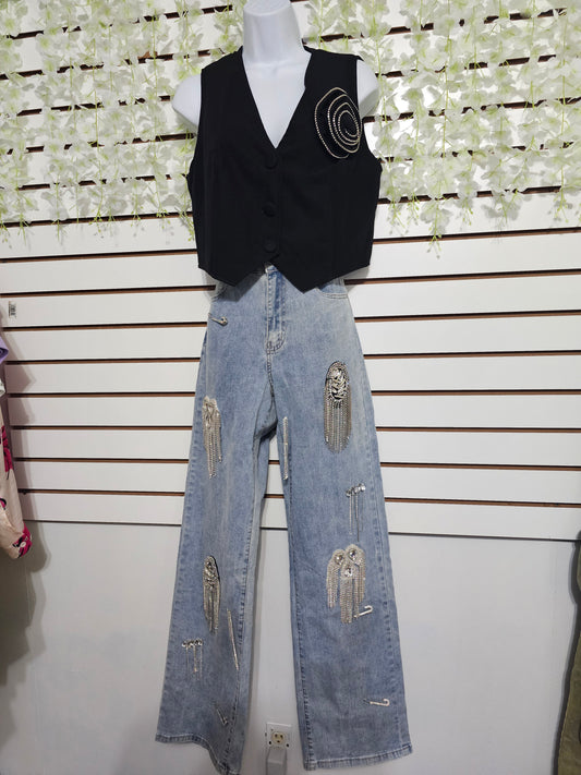 Sold outFlor black vest chaleco #D1