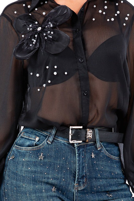 FLOWER & PEARL EMBELLISHED SHIRTS #D1