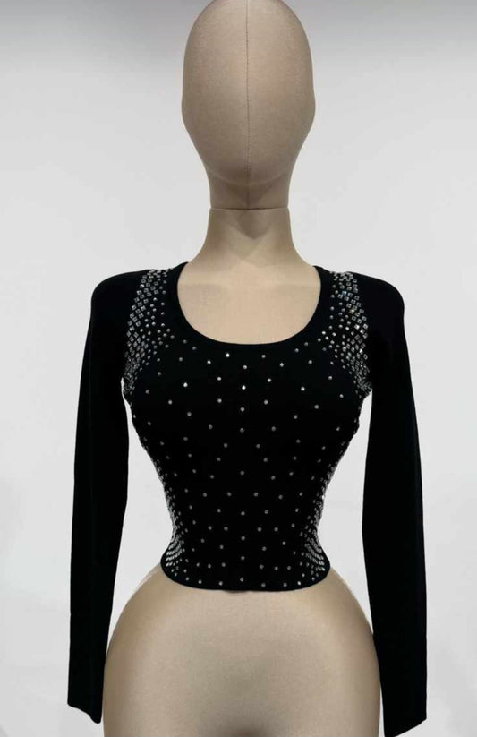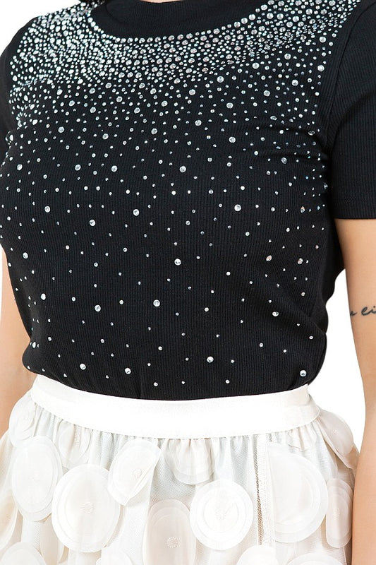 ESTELA T-SHIRT TEXTURED & RHINESTONE TOP #A