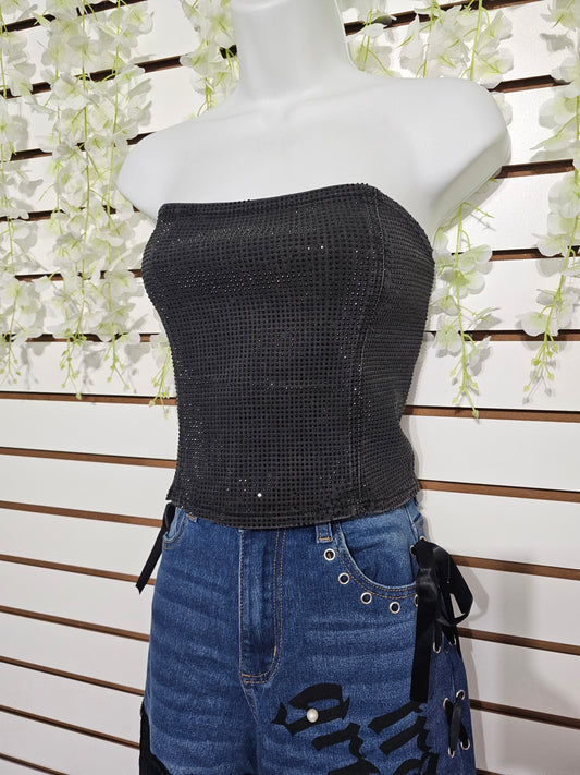 LADIES TOP BLACK RHINESTONE STRAPLESS #T