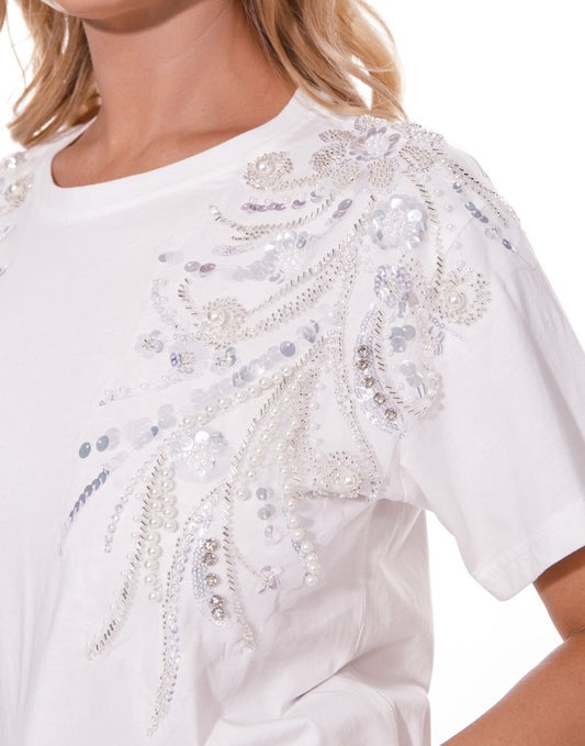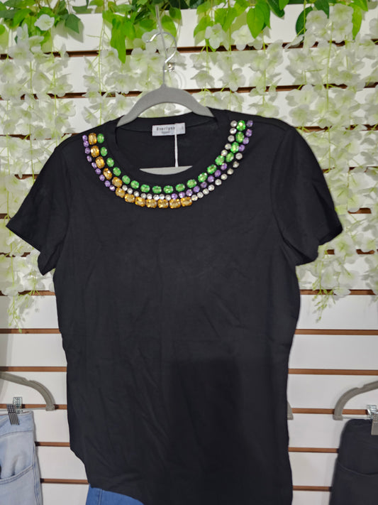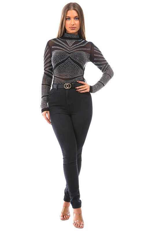 MERA MESH & MULTI COLOR RHINESTONE BODYSUIT #T