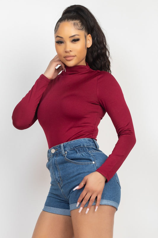 Mock Neck Solid Basic Top Burgundy #A