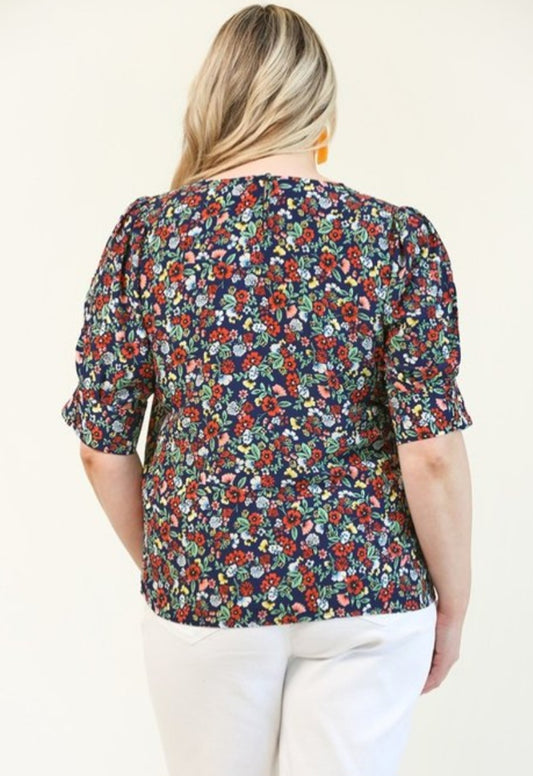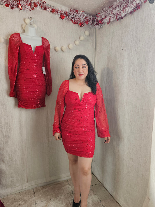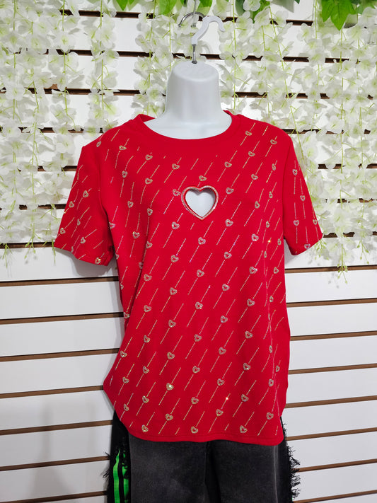 Red Blouse Plus Rhinestone Heart Detail strech #T