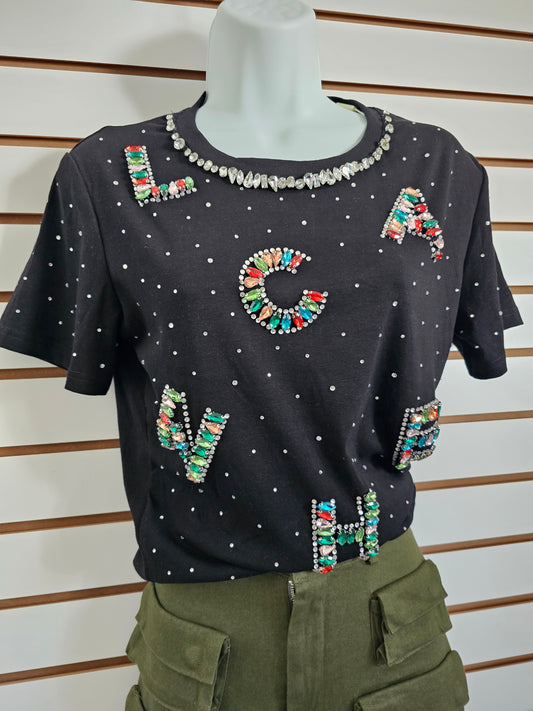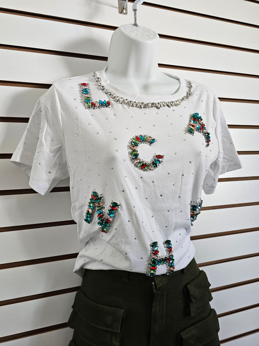 Rainbow Letter White T-shirt Rhinestone Colors #T