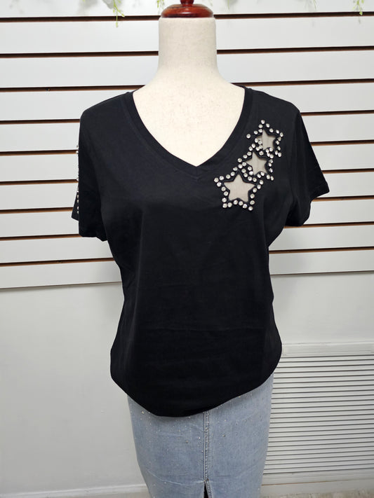 PLUS T-SHIRT RHINESTONE STAR AND TWO COLORS #T