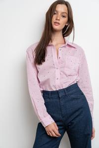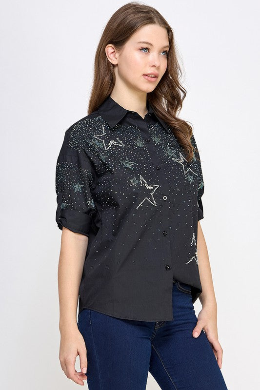 RHINESTONE DETAIL BUTTON DOWN SHIRT #A