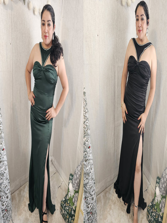 Sandy Maxi Dress Two colors Neckline Binding Satin # 12