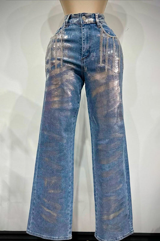 Ruby Denim Rhinestone women Party Jeans #T