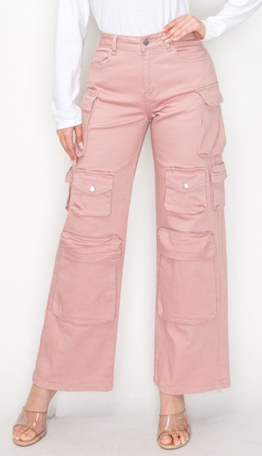 Rosalyn cargo Stretching Mauve Pink Denim jeans #15,20