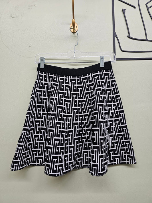 Vero Mini Skirt White and Black with Geometric Pattern and Gold Buttons