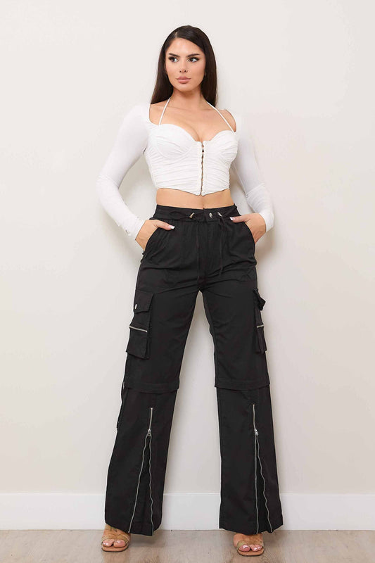 Cargo Pants with Zip Front Slit Woman Style Black #21