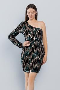 Benny Sequins Mini Dress Gold and Green ONE SHOULDER #12