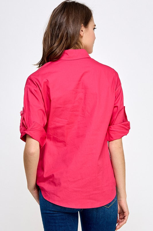 FLORAL 3D DETAIL SHIRT WOMAN FUCHSIA