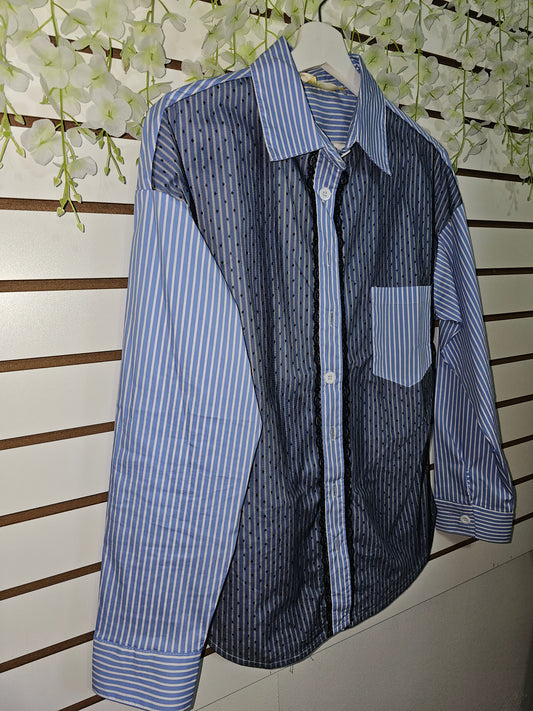 Blue stars Rhinestone Long-sleeved blouse #A