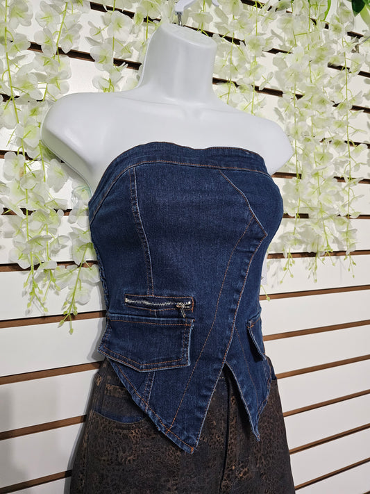 Camilla Top Denim Vest Blouse Strapless