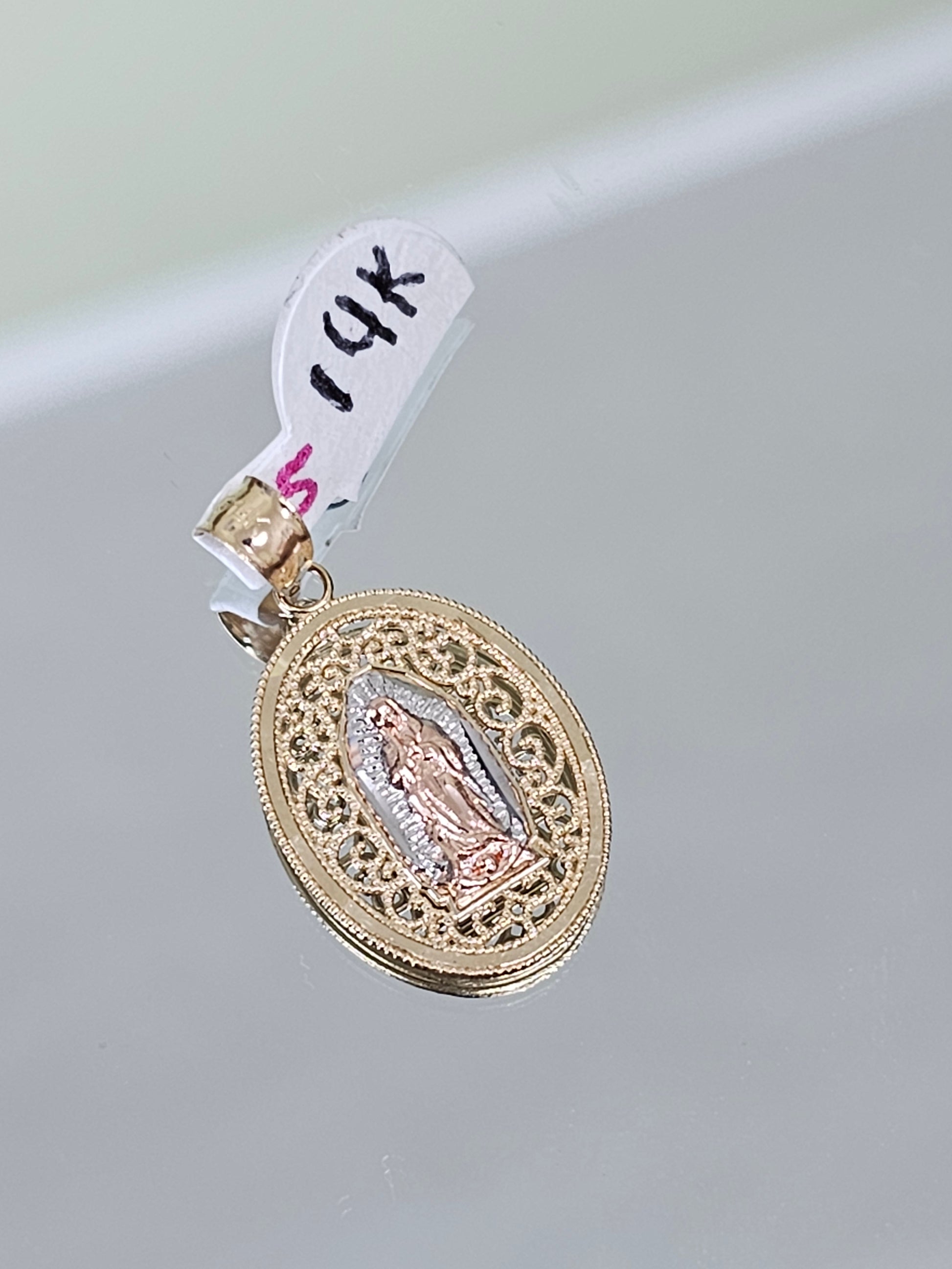 Virgine Mary tri-color pendent 14k Gold #5